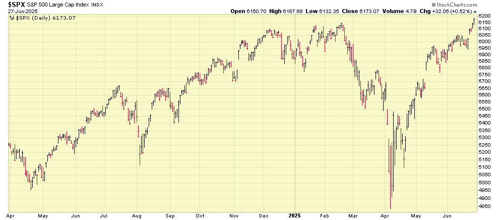 Trivia but important- post US troop direct involvement on dates/ Jan 17, 1991 Operation Desert Storm, March 20, 2003 Iraq Invasion, and April 15, 1986 Libya bombing (by F-111 jets), the stock indexes all rallied.   The recent B-2 bombings of Iraq will most likely result in the same behavior.   Furthermore, tariff headwinds appear to have subsided.   Real world indicators such as travel counts, hotel rooms, consumer spending, all indicate that the economy and people in general are not being hampered by middle east tensions or inflation.   I