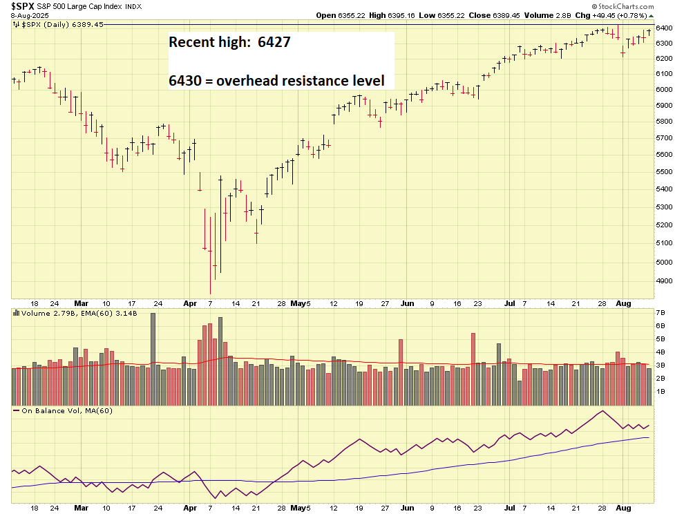Bottom Line up Front:  I am 50% S-Fund, 50% C-Fund.  The I-Fund flashed some energy but I am not so sure I want to be in international stocks right now, tariff impact is still an “unknown” on international companies.   The S&P 500 has hit a new high, on July 31, attaining 6427.   The next level to “break through” is 6430.